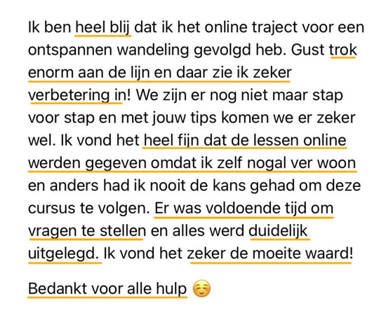 Is wandelen met jouw hond een uitdaging? Trekt hij aan de lijn of reageert hij op andere honden, ondanks alles wat je al geprobeerd hebt? Met de onlinecursus 'Ontspannen Wandelen' leer je hoe je ontspannen en in verbinding met je hond kunt wandelen – zonder fysieke correcties of onderdrukkende hulpmiddelen zoals slipkettingen, gentle-leaders of anti-trektuigen.