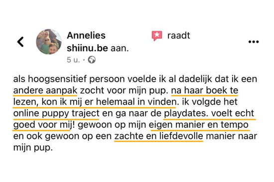 De eerste maanden zijn cruciaal voor zowel jou als je pup. Je krijgt duidelijke stappenplannen om te leren omgaan met veelvoorkomend puppygedrag zoals bijtgedrag, opspringen, zindelijkheidstraining,